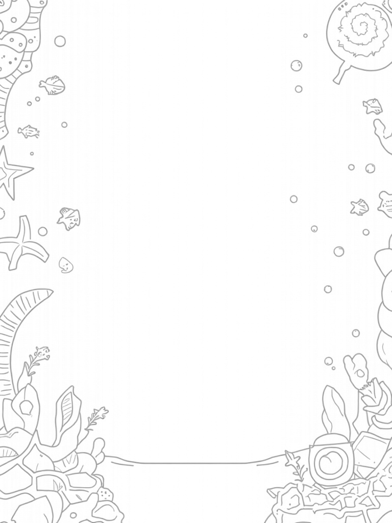 Imagine a stunning underwater world filled with colossal coral formations that twist and spiral like nature's own art. Above, large, translucent jellyfish float gracefully, their tentacles swaying like delicate ribbons in the water. Scattered among the seaweed, you’ll find a vintage diving helmet, a neat little treasure waiting to be colored. Clusters of luminescent sea stars glimmer nearby, adding a magical touch to the sandy ocean floor.