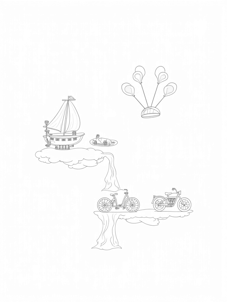 Floating Islands with Unique Vehicles Coloring Page