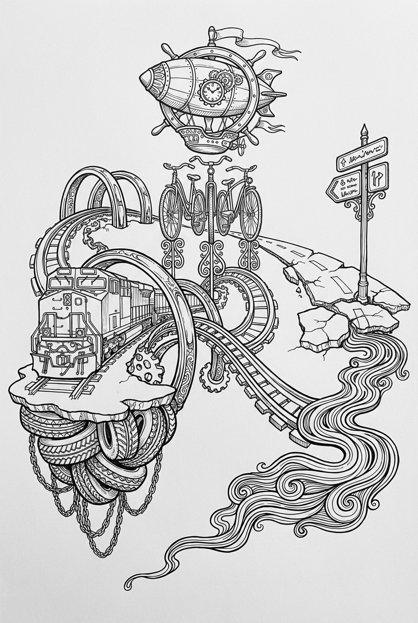 Did you know the bicycles are drawn as if they’re holding up the airship? It’s a neat little visual trick that makes the whole scene feel like a playful puzzle. The chrome arches give you lots of smooth curves to color, while the cracked road offers tiny pockets for bright orange or glossy black. And that big road sign? It’s just waiting for a splash of your favorite colors, maybe a bright red or a sunny yellow. Grab your crayons and let each piece tell its own story.